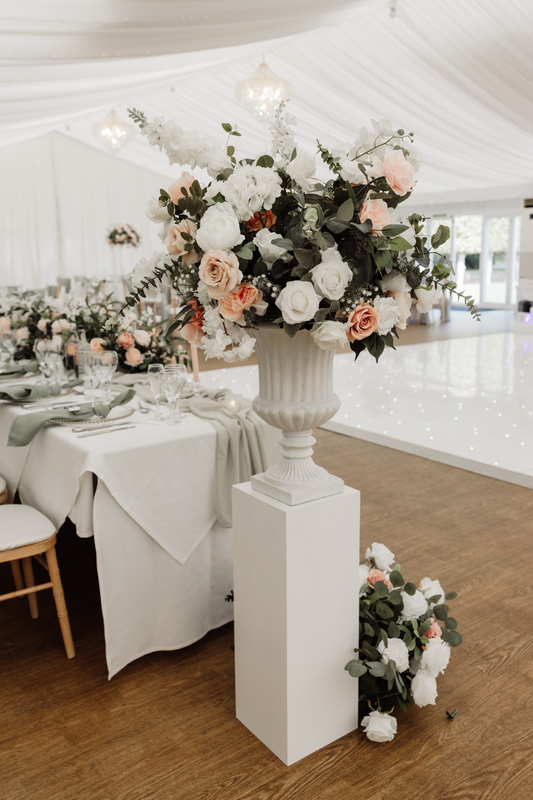 Each range is carefully pre‑designed for fullness, not every collection can be tweaked due to this. The Luxe and Country Garden arrangements come as‑is, while the Timeless collection has a flexible base: we’re happy to add in an accent colour to match your theme. For example red, pastels or any shade that suits your palette.